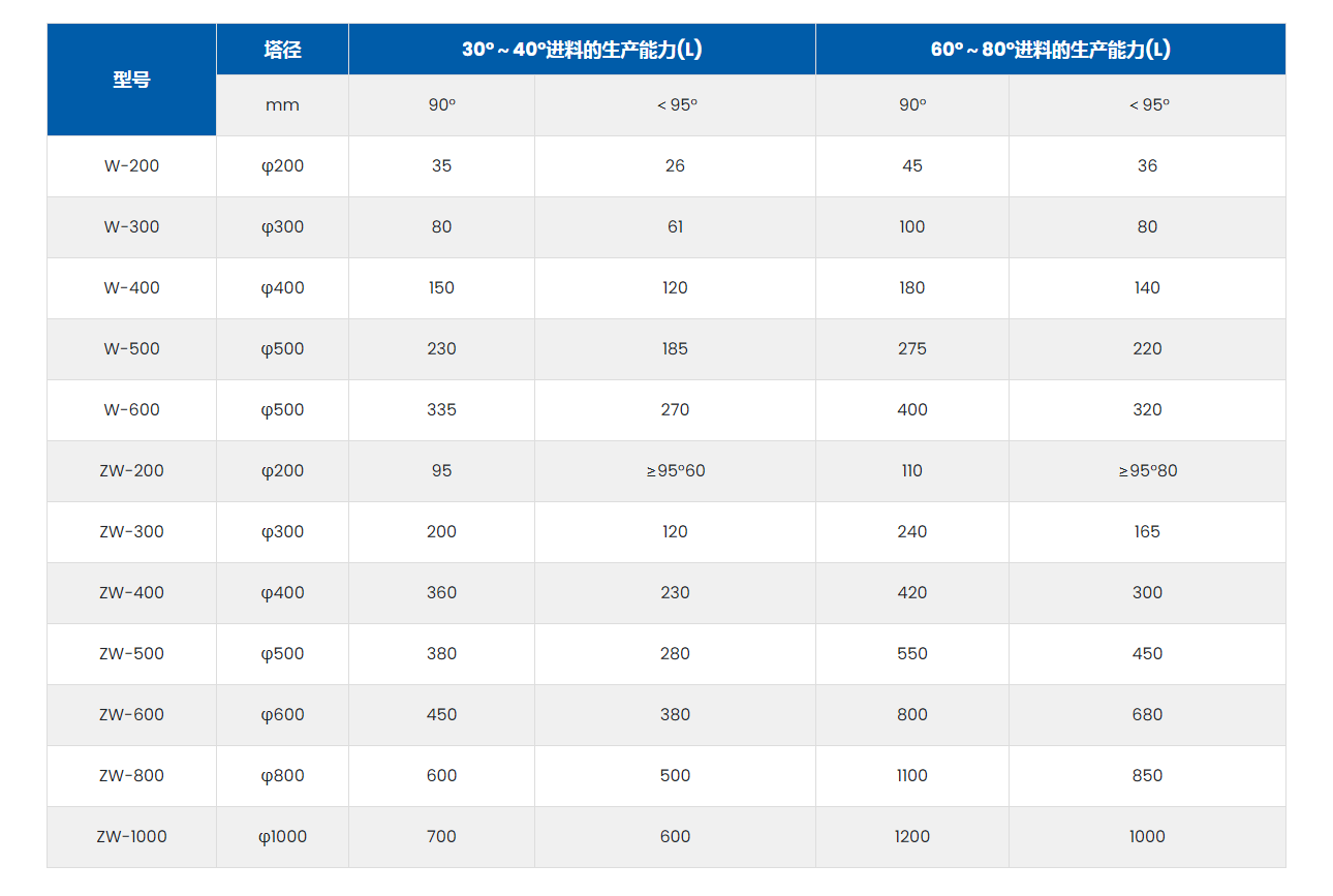 本裝置適用于制藥、食品、輕工、化工等行業(yè)的稀酒精回收,也適用于甲醇等其他溶媒的蒸餾。本裝置根據(jù)用戶的不同要求設(shè)計(jì),成品要求越高,可加大回流比,但產(chǎn)量則相應(yīng)降低。W型可用于不同溶劑的蒸餾。W型為間隙式,ZW型為連續(xù)式?;亓鱎=1-3)根據(jù)進(jìn)出料濃度而定)殘液排放含醇濃度:W型≤3°ZW≤1°